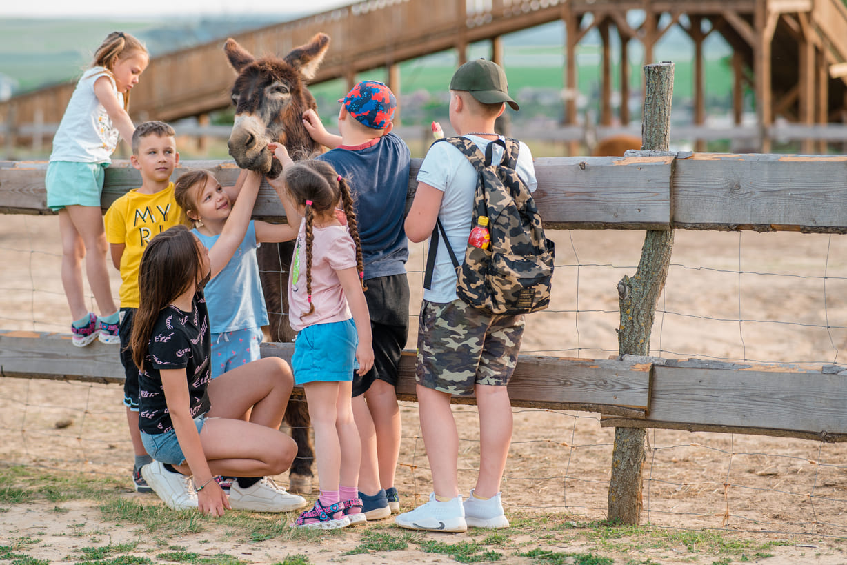 Pre škôlkarov a mladších žiakov základnej školy ponúkame výlet plný zážitkov na farme. Dozviete sa o tom, ako sa žije na farme a čo všetko život na farme obnáša, budete kŕmiť zvieratká, vyskúšate si podojiť umelú kravičku, zistíte, či by ste vedeli hodiť laso na kravku, zastrieľate si z luku. Na farme zažijete aj veľa zábavy na veľkom ihrisku s pieskoviskom, deti sa vyskáču na mega trampolínach.